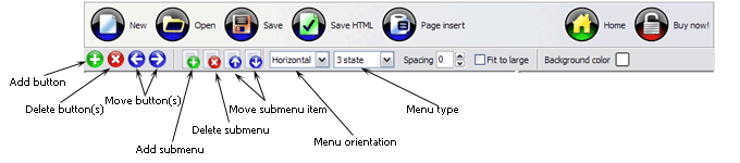 After that, you can edit your code to prepare the page for the menu insertion. Normally, no coding is required. Then set the cursor to the line you want menu code to be inserted to and click the "Insert" button. The menu code will be inserted into the page. Then you can either save the page or close the dialog without saving by clicking "Save" or "Close" buttons. Add button - to add website buttons to the menu. Delete button(s) - to delete selected button(s). Is inactive if no button is selected. Learn more about buttons web multiple selection. Move button(s) - to change selected button's order in the menu. Selected button(s) will be moved one position left/right each time you click one of the Move buttons. Add submenu's item - to add submenu's item to the menu. Is inactive if no button is selected. Delete button(s) - to delete selected submenu item(s). Is inactive if no button is selected. Move submenu's item - to change selected submenu's item order in the menu. Selected item(s) will be moved one position up/down each time you click one of the submenu's item. Menu orientation - to select menu orientation (vertical or horizontal). In vertical menu all website buttons are arranged in a column and have the same width. If the menu is horizontal then all its buttons are arranged in a row and have the same height.