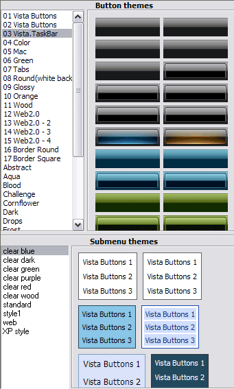In the Themes toolbox you can choose selected buttons for web appearance. Click theme name to open it. The theme's available button templates will appear in the Button backgrounds list.