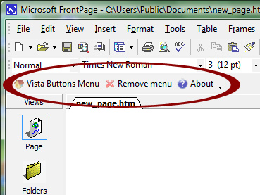In order to use the extension in FrontPage you need a copy of Vista Buttons installed on your computer.