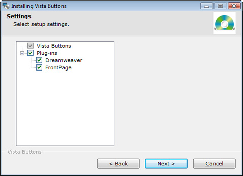 The Vista Buttons Extension inserts a Vista Buttons icon on a toolbar.